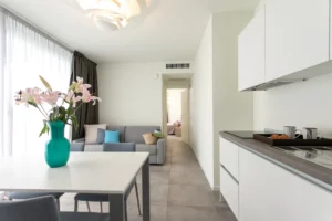 Die Standardwohnungen, die sich zwischen dem 1. und 5. Stock befinden, bieten 45 m² gut organisierte Fläche, ideal für bis zu 4 Personen.